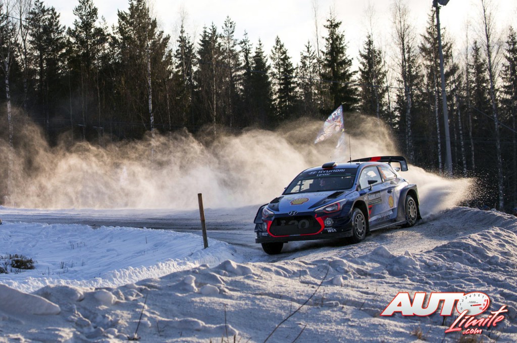 Thierry Neuville, al volante del Hyundai i20 Coupé WRC, durante el Rallye de Suecia 2017, puntuable para el Campeonato del Mundo de Rallyes WRC.