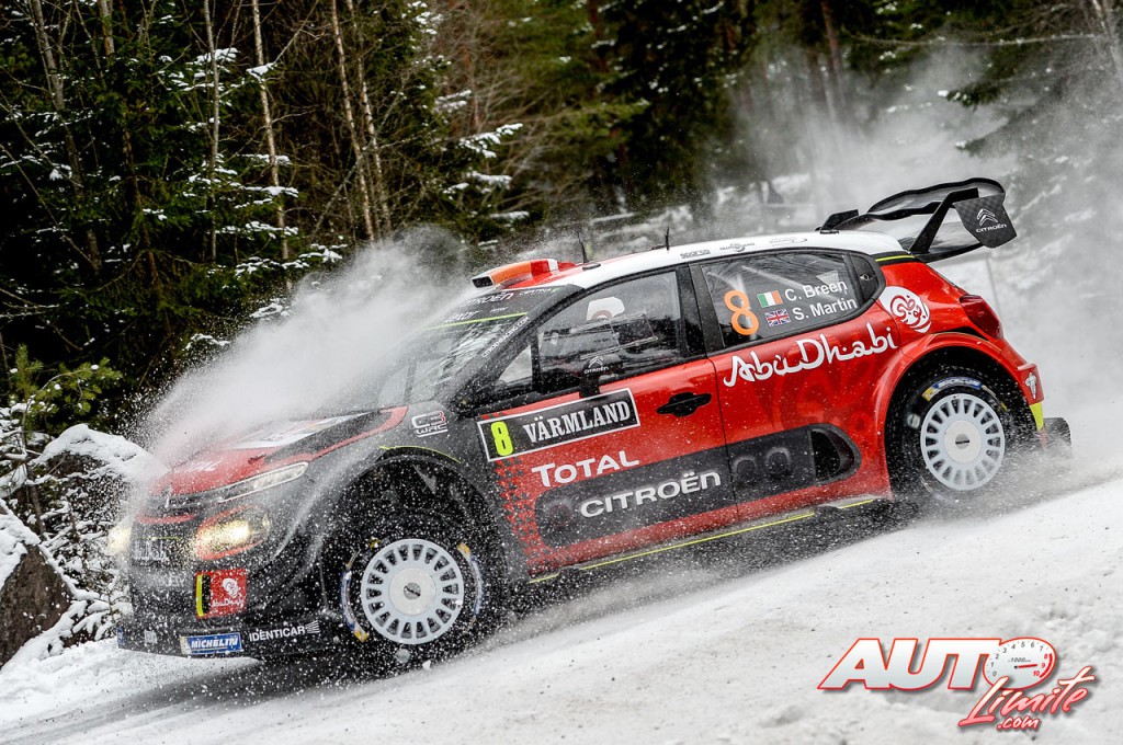 Craig Breen, al volante del Citroën C3 WRC, durante el Rallye de Suecia 2017, puntuable para el Campeonato del Mundo de Rallyes WRC.