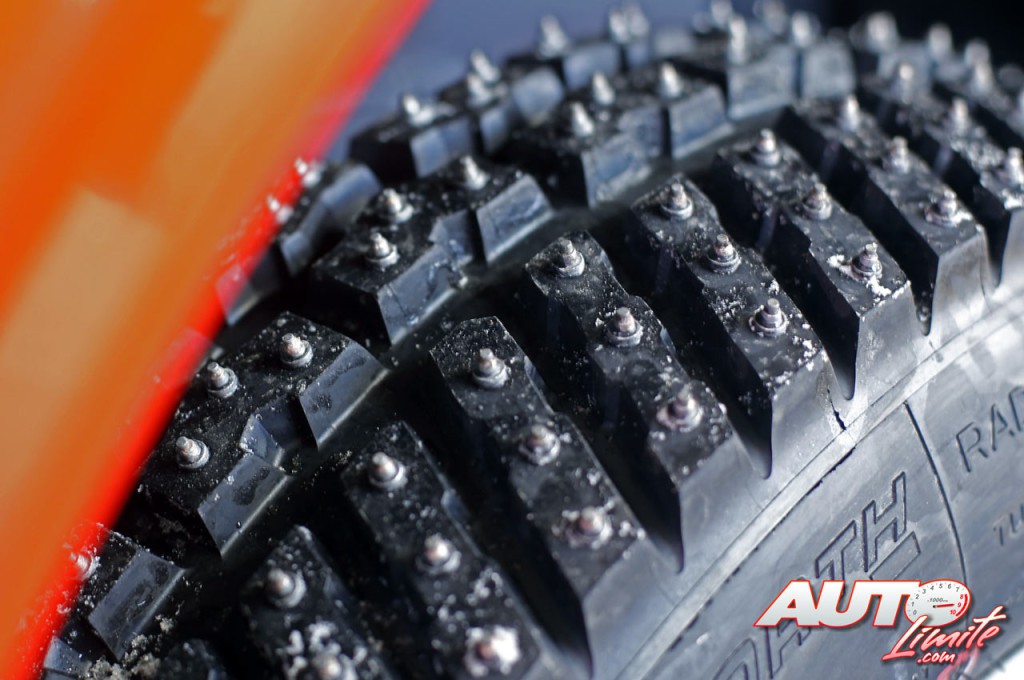 Neumáticos de clavos en el Rally de Suecia 2017, puntuable para el Campeonato del Mundo de Rallies WRC.