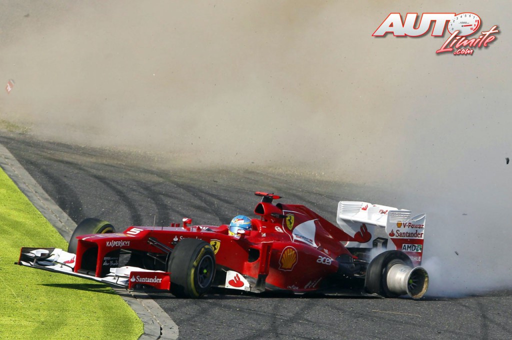 Fernando Alonso, al volante del Ferrari F2012, en el accidente que protagonizó en la salida del Gran Premio de Japón 2012, disputado en el circuito de Suzuka y puntuable para el Campeonato del Mundo de F1 2012.