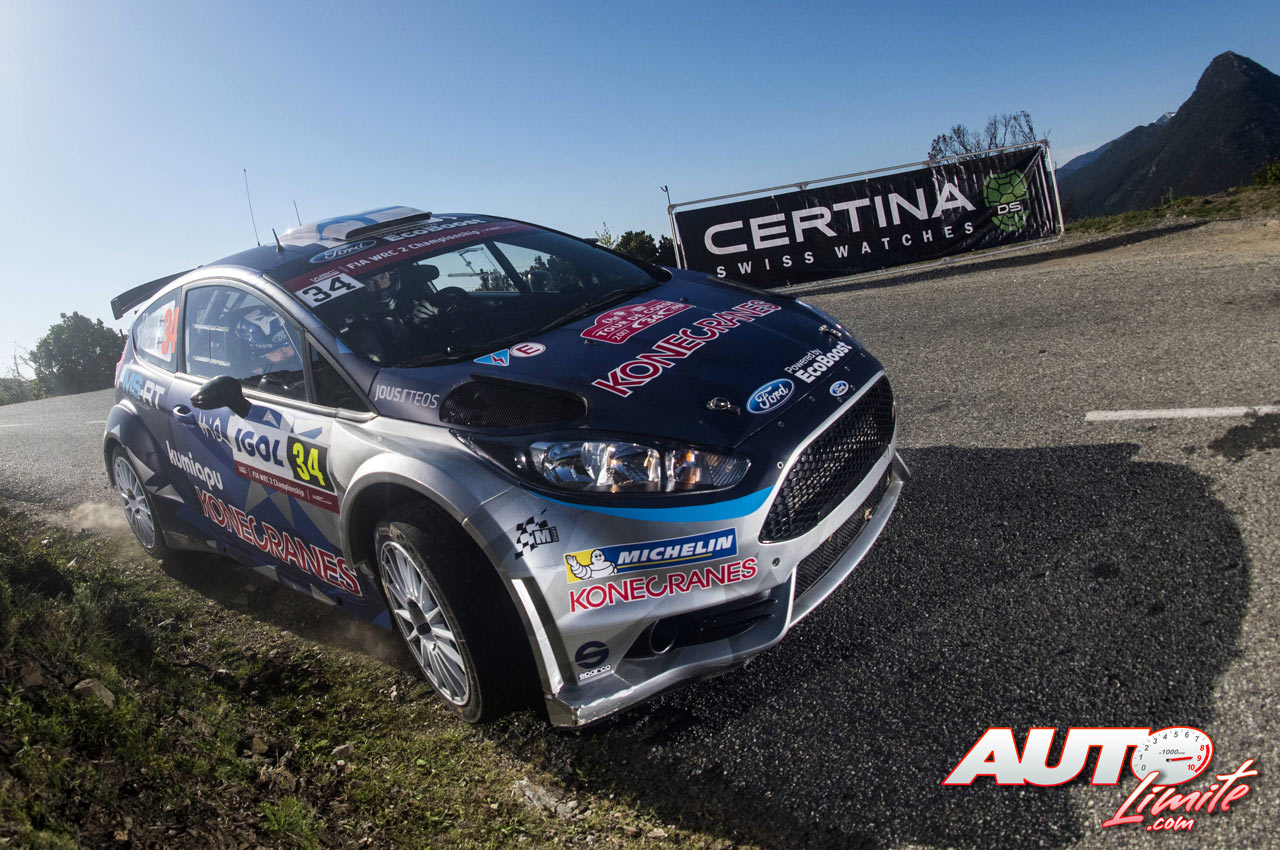 Teemu Sunninen, al volante del Ford Fiesta R5 WRC2, durante el Rallye de Francia 2017, puntuable para el Campeonato del Mundo de Rallies WRC2.