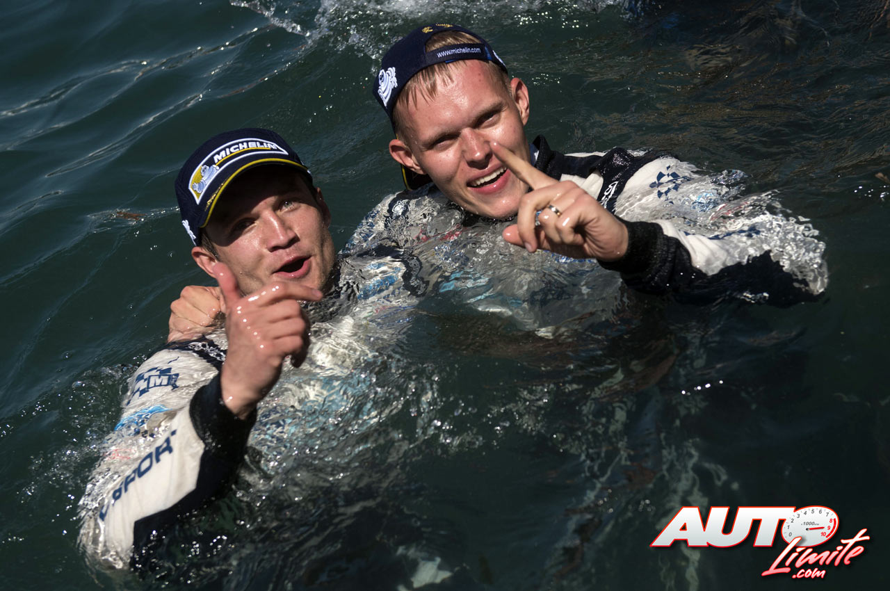 Ott Tänac y Martin Järveoja celebran su victoria en el Rally de Italia 2017, puntuable para el Campeonato del Mundo de Rallies WRC.
