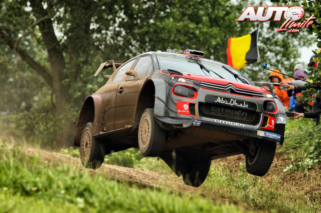 Stéphane Lefebvre, al volante del Citroën C3 WRC, durante el Rallye de Polonia 2017, puntuable para el Campeonato del Mundo de Rallies WRC.