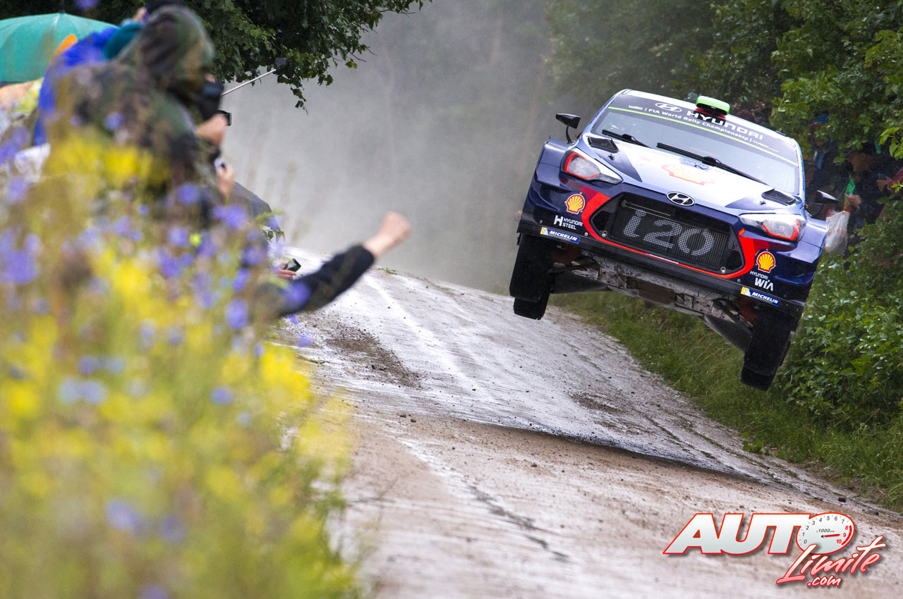 Hayden Paddon, al volante del Hyundai i20 Coupé WRC, durante el Rallye de Polonia 2017, puntuable para el Campeonato del Mundo de Rallies WRC.