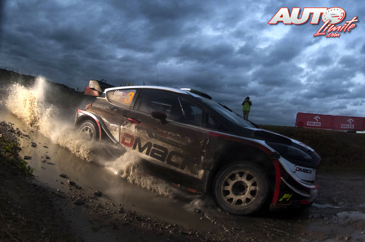 Elfyn Evans, al volante del Ford Fiesta WRC, durante el Rallye de Polonia 2017, puntuable para el Campeonato del Mundo de Rallies WRC.