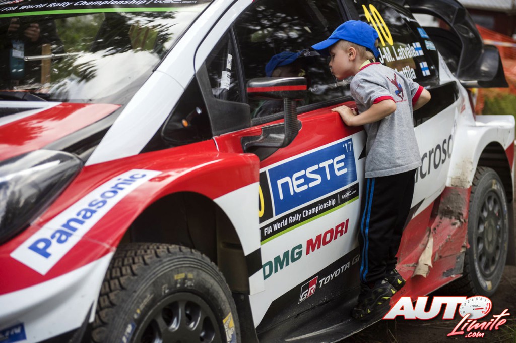 Un joven aficionado se interesa por el interior del Toyota Yaris WRC de Jari-Matti Latvala, durante el Rally de Finlandia 2017, puntuable para el Campeonato del Mundo de Rallies WRC.