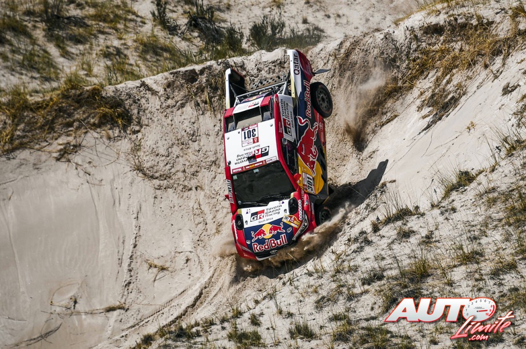 Nasser Al Attiyah, al volante del Toyota Hilux V8 4x4, durante el Rally Dakar 2018.