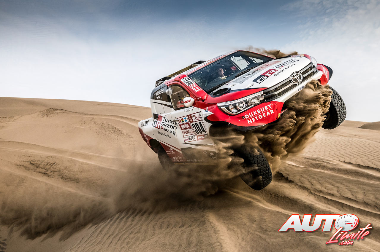 Giniel de Villiers, al volante del Toyota Hilux V8 4x4, durante el Rally Dakar 2018.