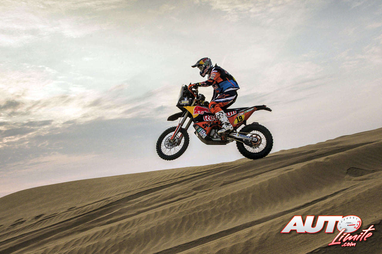 Antoine Meo, a los mandos de su KTM 450 Rally Replica, durante una de las etapas del Rally Dakar 2018.