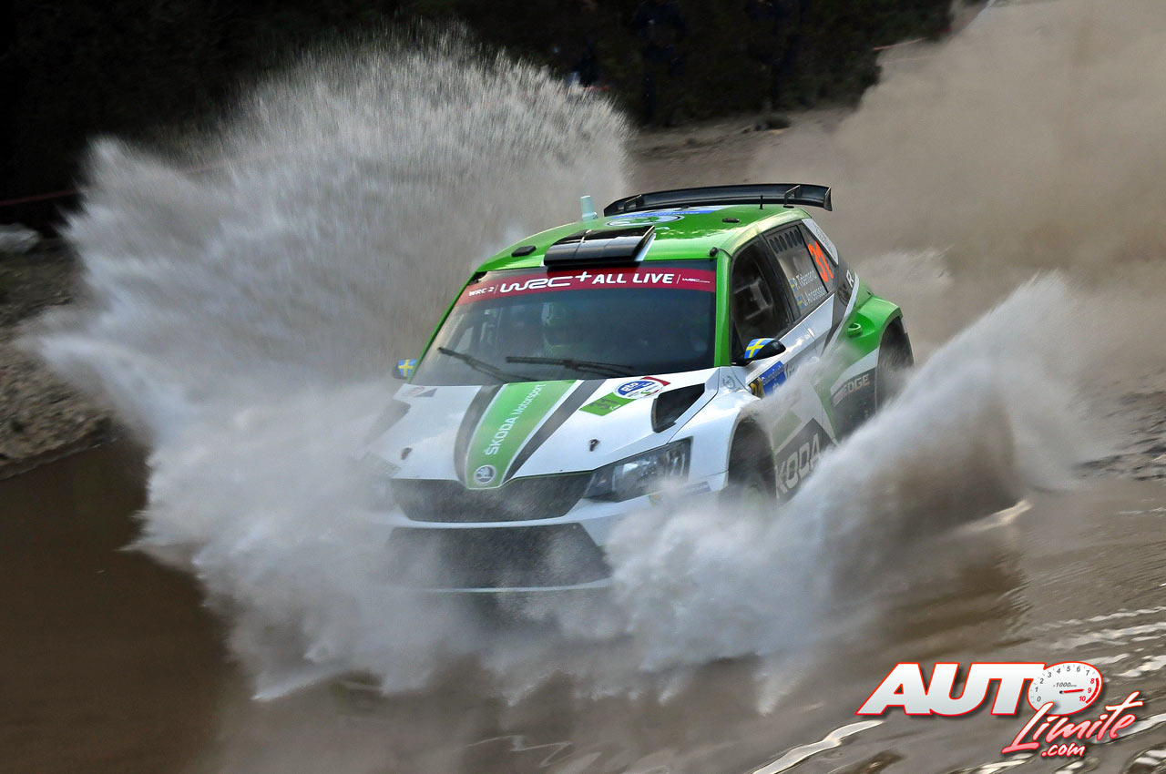 Pontus Tidemand, al volante del Skoda Fabia R5 WRC2, durante el Rally de México 2018, puntuable para el Campeonato del Mundo de Rallies WRC2.