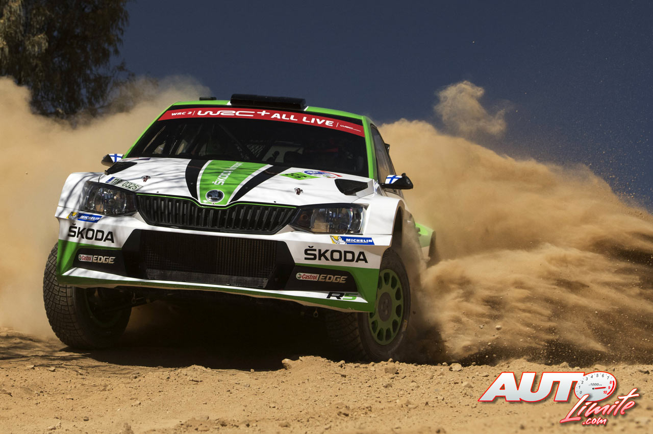 Kalle Rovanperä, al volante del Skoda Fabia R5 WRC2, durante el Rally de México 2018, puntuable para el Campeonato del Mundo de Rallies WRC2.