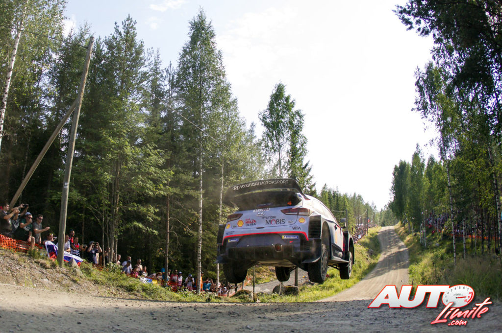 Andreas Mikkelsen, al volante del Hyundai i20 Coupé WRC, durante el Rally de Finlandia 2018, puntuable para el Campeonato del Mundo de Rallies WRC.