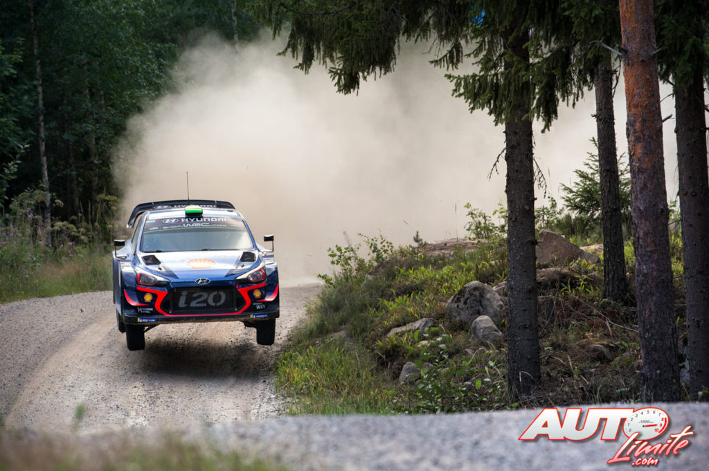 Hayden Paddon, al volante del Hyundai i20 Coupé WRC, durante el Rally de Finlandia 2018, puntuable para el Campeonato del Mundo de Rallies WRC.