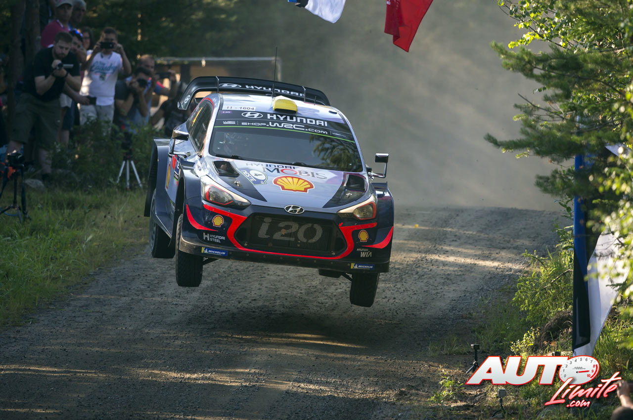 Andreas Mikkelsen, al volante del Hyundai i20 Coupé WRC, durante el Rally de Finlandia 2018, puntuable para el Campeonato del Mundo de Rallies WRC.