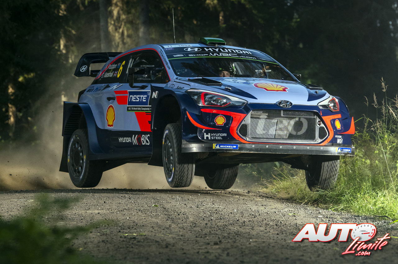 Hayden Paddon, al volante del Hyundai i20 Coupé WRC, durante el Rally de Finlandia 2018, puntuable para el Campeonato del Mundo de Rallies WRC.