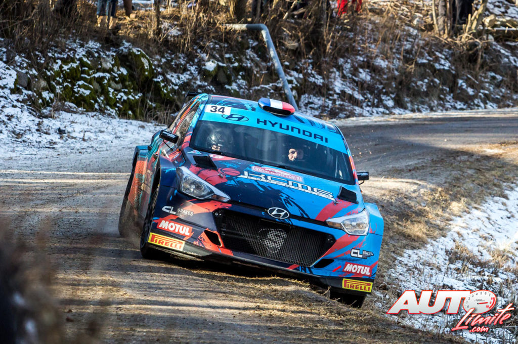 Stéphane Sarrazin, al volante del Hyundai i20 R5 WRC2, durante el Rally de Montecarlo 2019, puntuable para el Campeonato del Mundo de Rallies WRC2.