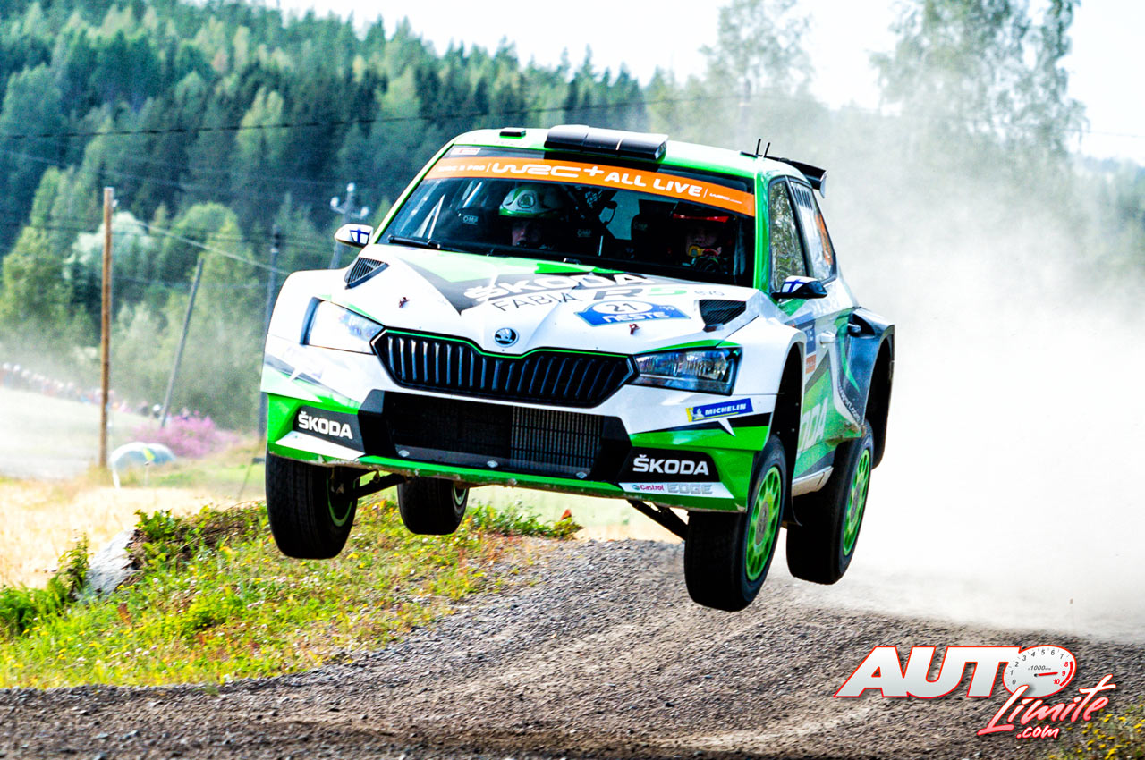 Kalle Rovanperä, al volante del Skoda Fabia R5 Evo WRC2, durante el Rally de Finlandia 2019, puntuable para el Campeonato del Mundo de Rallies WRC2.