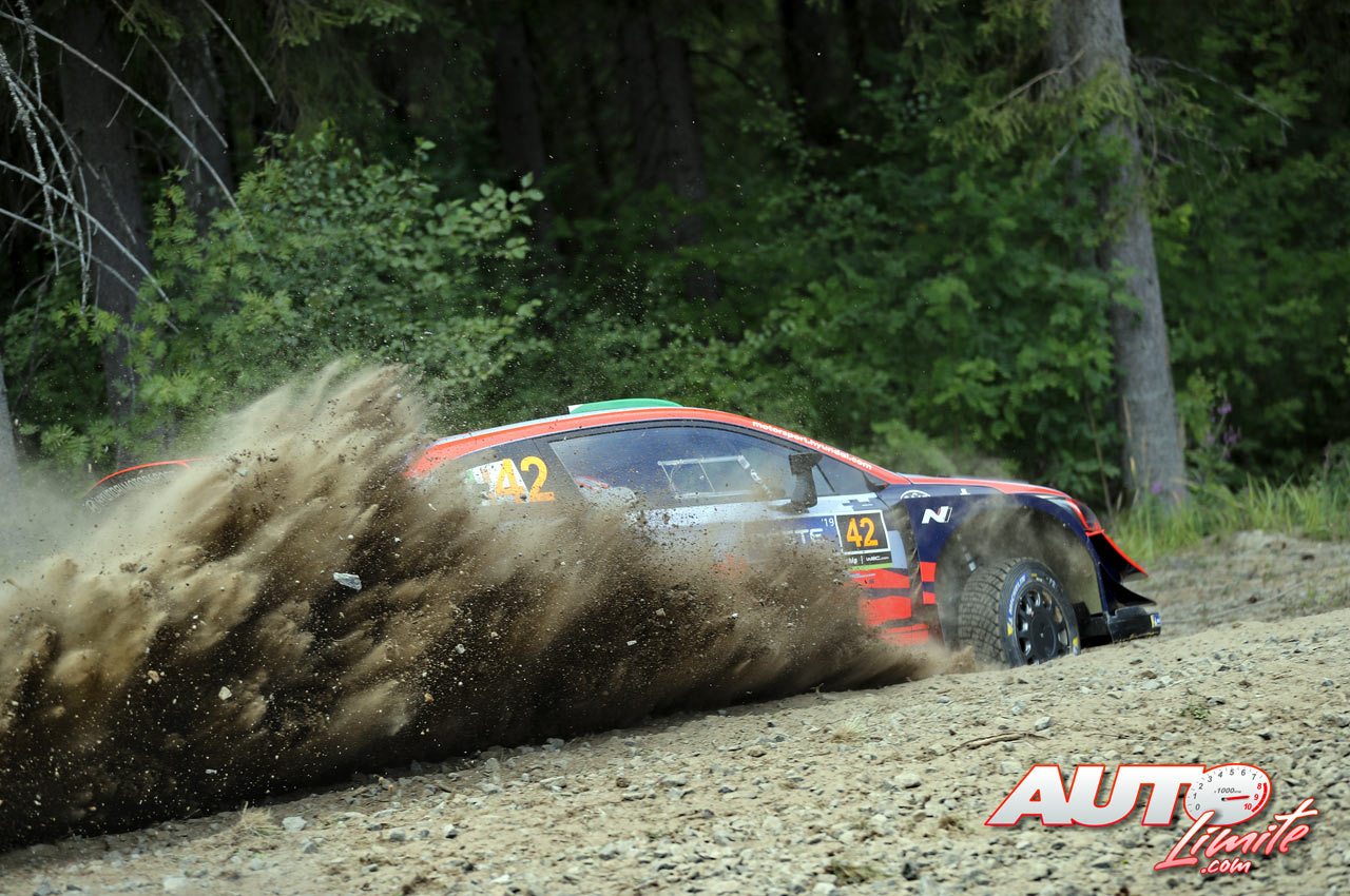Craig Breen, al volante del Hyundai i20 Coupé WRC, durante el Rally de Finlandia 2019, puntuable para el Campeonato del Mundo de Rallies WRC.