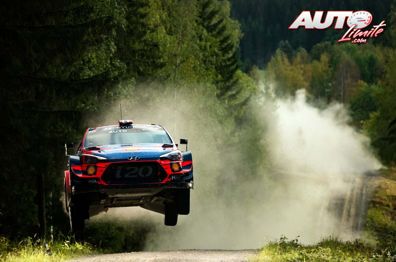 Andreas Mikkelsen, al volante del Hyundai i20 Coupé WRC, durante el Rally de Finlandia 2019, puntuable para el Campeonato del Mundo de Rallies WRC.