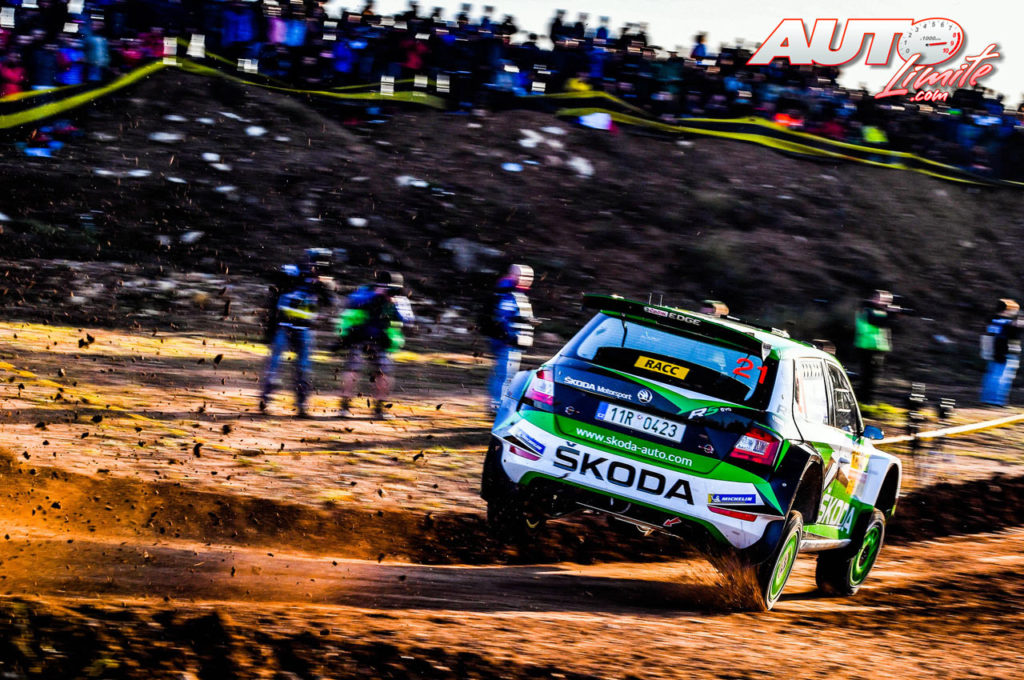 Jan Kopechý, al volante del Skoda Fabia R5 Evo WRC2, durante el Rally de España 2019, puntuable para el Campeonato del Mundo de Rallies WRC2.