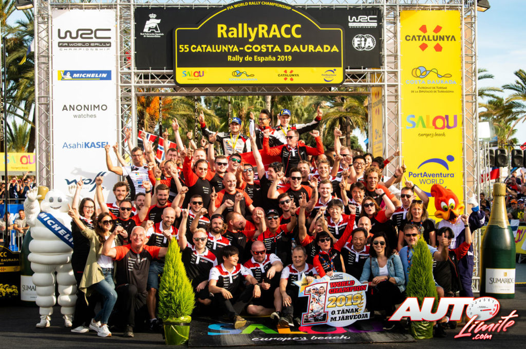 El equipo Toyota Gazoo Racing WRT celebraba el título de pilotos WRC de Ott Tänak (Toyota) en el podio del Rally de España 2019.