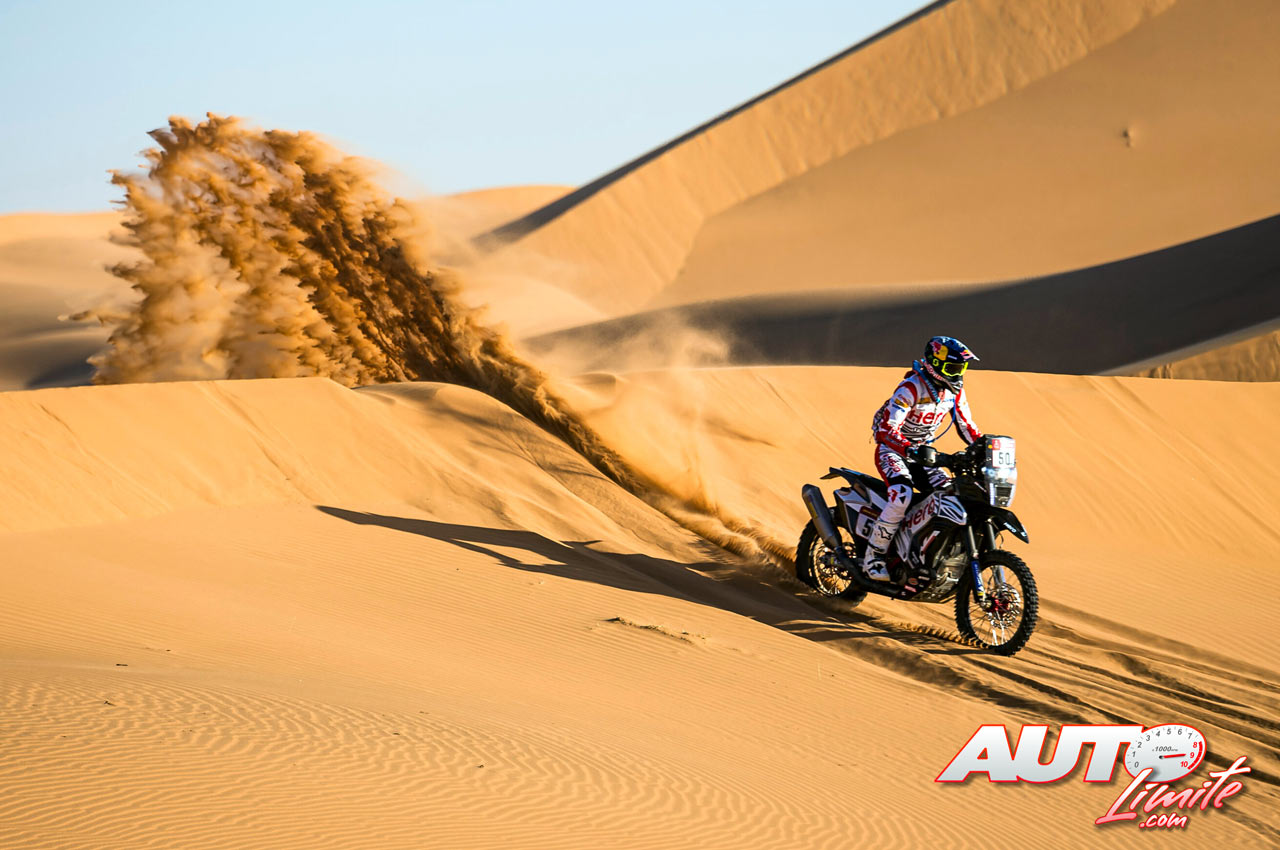 Santosh Chunchunguppe Shivashankar, a los mandos de su Hero 450 Rally, durante el Rally Dakar 2020.