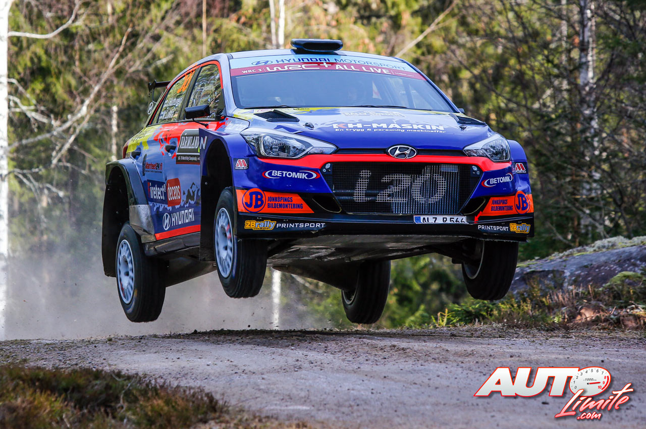 Jari Huttunen, al volante del Hyundai NG i20 R5 WRC3, durante el Rally de Suecia 2020, puntuable para el Campeonato del Mundo de Rallies WRC 3.
