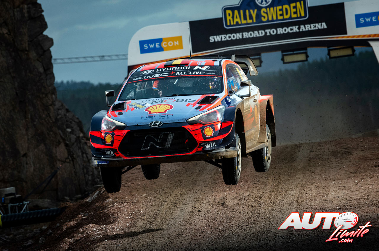 Thierry Neuville, al volante del Hyundai i20 Coupé WRC, durante el Rally de Suecia 2020, puntuable para el Campeonato del Mundo de Rallies WRC.