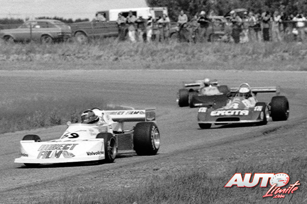 Gilles Villeneuve ganaba su segundo título de la Fórmula Atlantic en la temporada 1977, al volante de un March-Ford 77B. En esta carrera en el circuito de Edmonton (Canadá), Villeneuve se situaba por delante de un tal Keke Rosberg (número 4), que sería posteriormente Campeón del Mundo de F1 en 1982, al volante de un Williams.