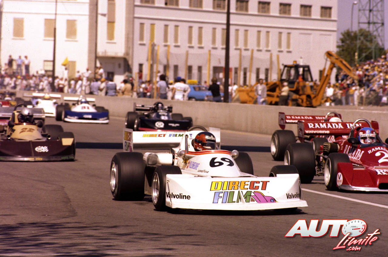 Al volante de un Mach-Ford 77B, Gilles Villeneuve obtenía su segundo título consecutivo en la Fórmula Atlantic de 1977. En el circuito urbano de Trois-Rivières partía desde la "pole position", con Patrick Depailler (número 2) arrancando a su izquierda.