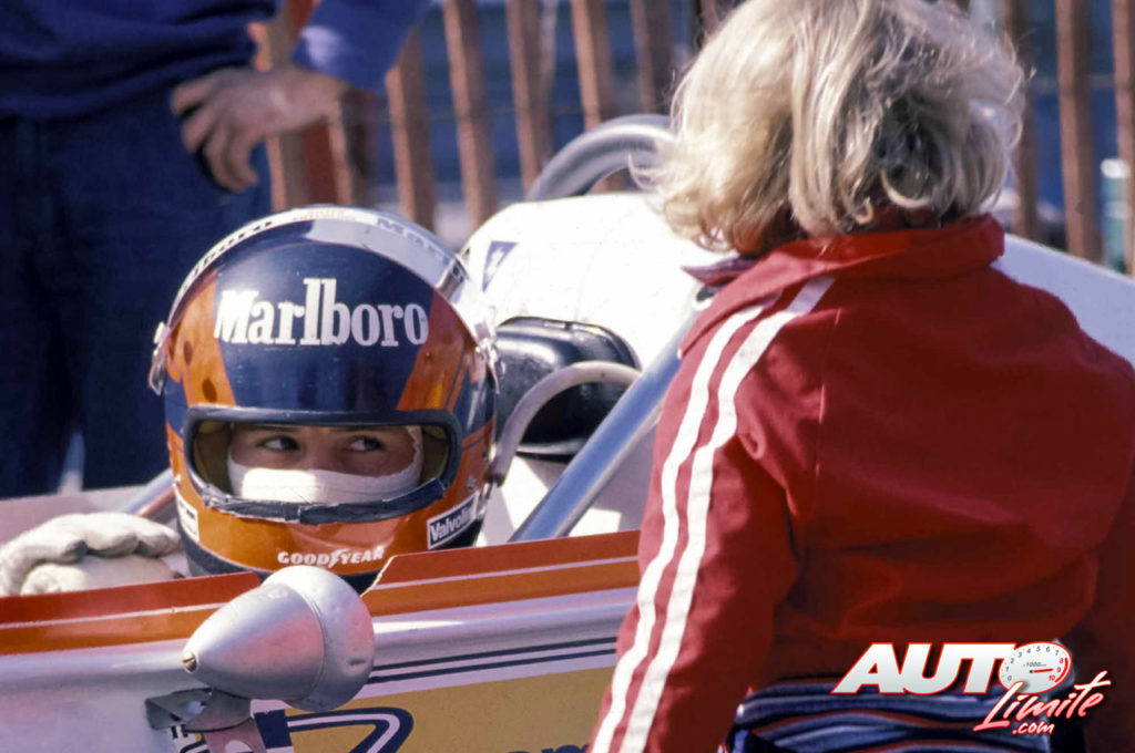 Gilles Villeneuve subido en el "cockpit" del March-Ford 77B con el que ganaba su segundo título en la Fórmula Atlantic de 1977. Junto a él se encontraba el pequeño Jacques Villeneuve, que años después se proclamaría Campeón del Mundo de F1 con Williams en 1997.
