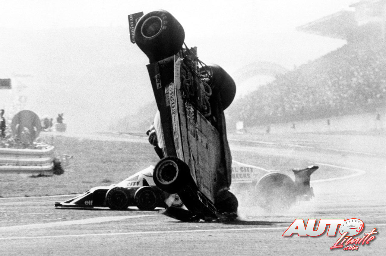 Pocas vueltas después de dar comienzo el GP de Japón de 1977, Gilles Villeneuve (Ferrari) golpeaba por detrás a Ronnie Peterson (Tyrrell) y salía volando fuera de la pista, falleciendo dos espectadores en el accidente.