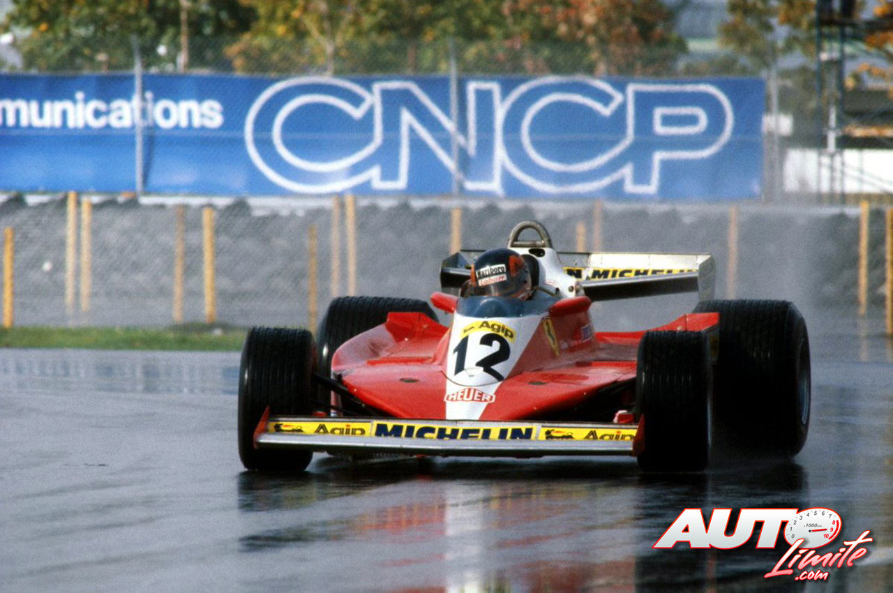 Gilles Villeneuve, al volante del Ferrari 312 T3, durante los entrenamientos en mojado del GP de Canadá de 1978, disputado en el circuito Isla de Notre Dame en Montreal.