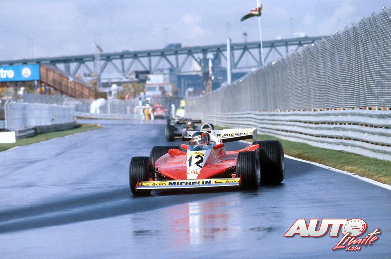 Gilles Villeneuve, al volante del Ferrari 312 T3, durante los entrenamientos en mojado del GP de Canadá de 1978, disputado en el circuito Isla de Notre Dame en Montreal.