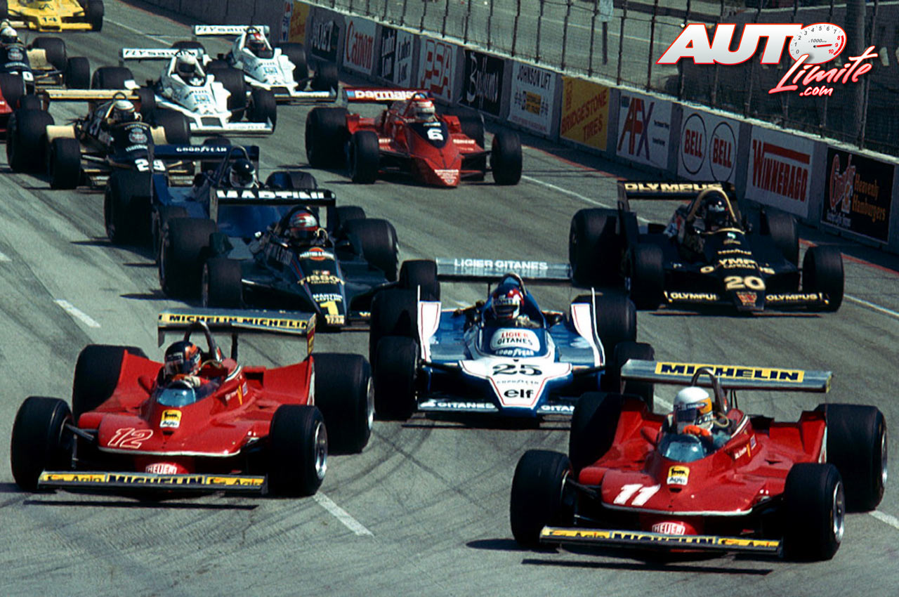 Gilles Villeneuve, al volante del Ferrari 312 T4 (nº 12), obtenía la victoria en el GP de EEUU del Oeste de 1979, disputado en el circuito urbano de Long Beach.