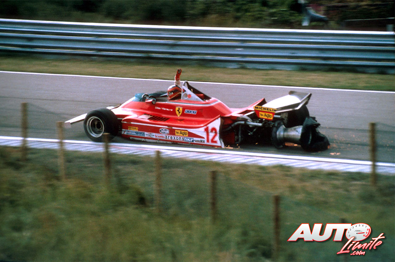 Gilles Villeneuve, al volante del Ferrari 312 T4, durante su última vuelta en el GP de Holanda de 1979, disputado en el circuito de Zandvoort.