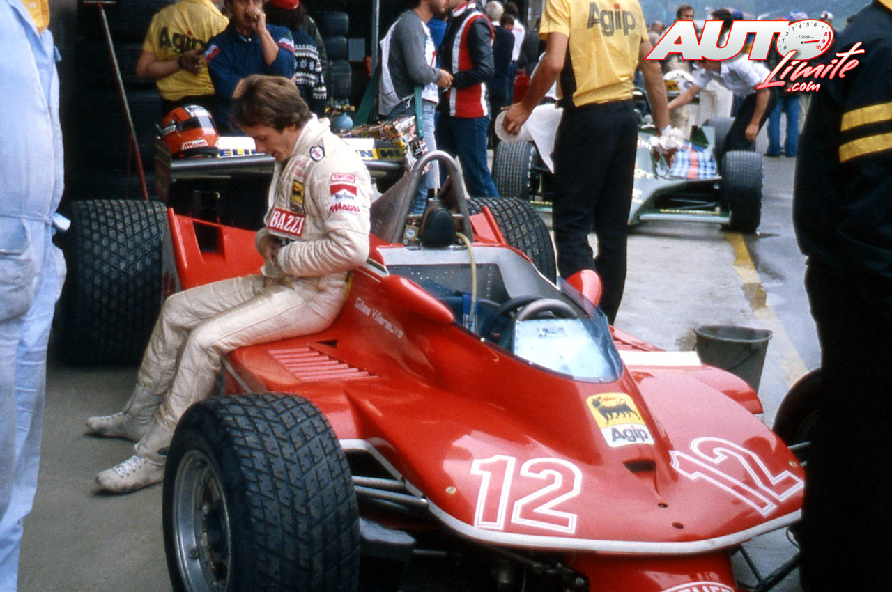 Gilles Villeneuve, sentado sobre su Ferrari 312 T4 durante el GP Dino Ferrari de 1979, disputado en el circuito de Imola, prueba que no fue puntuable para el Campeonato del Mundo de Fórmula 1 de 1979.