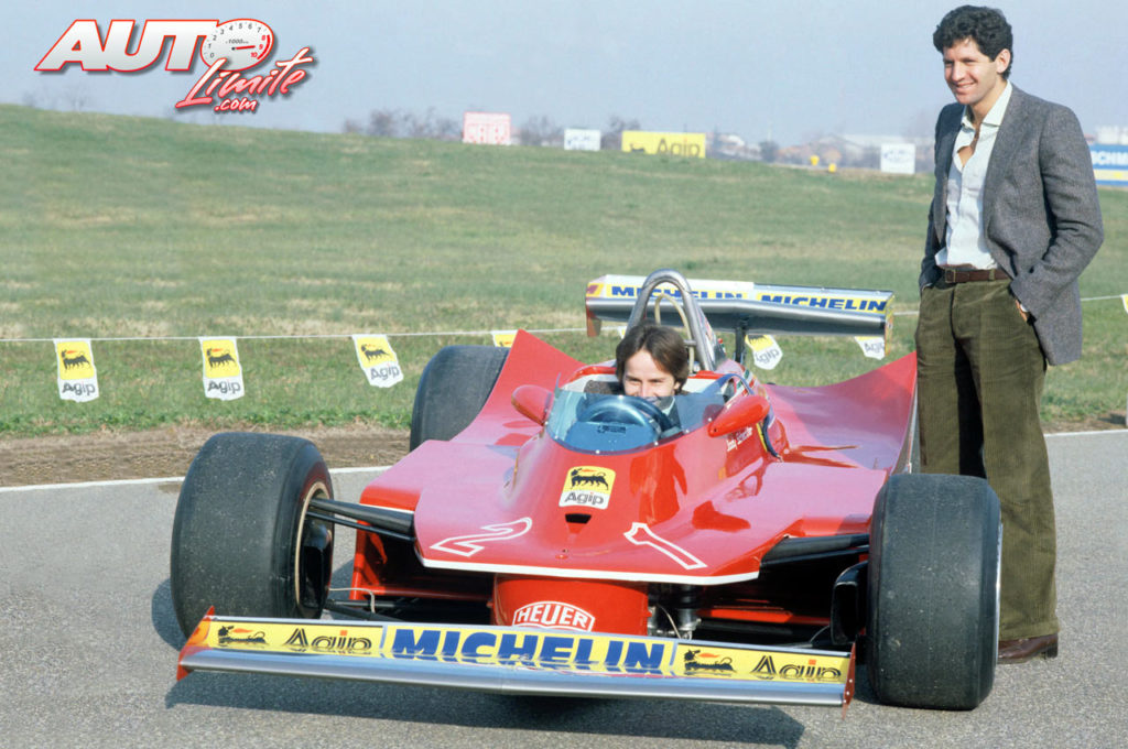 Gilles Villeneuve, junto a Jody Scheckter, durante la presentación del nuevo Ferrari 312 T5 de la temporada 1980 en el circuito de Fiorano.