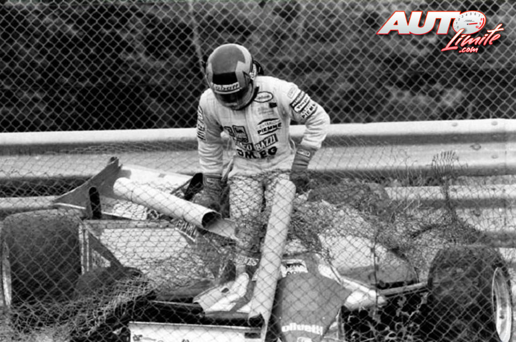 Gilles Villeneuve, al volante del Ferrari 126 CK, durante un accidente sufrido en los entrenamientos del GP de Francia de 1981, disputado en el circuito de Dijon-Prenois.
