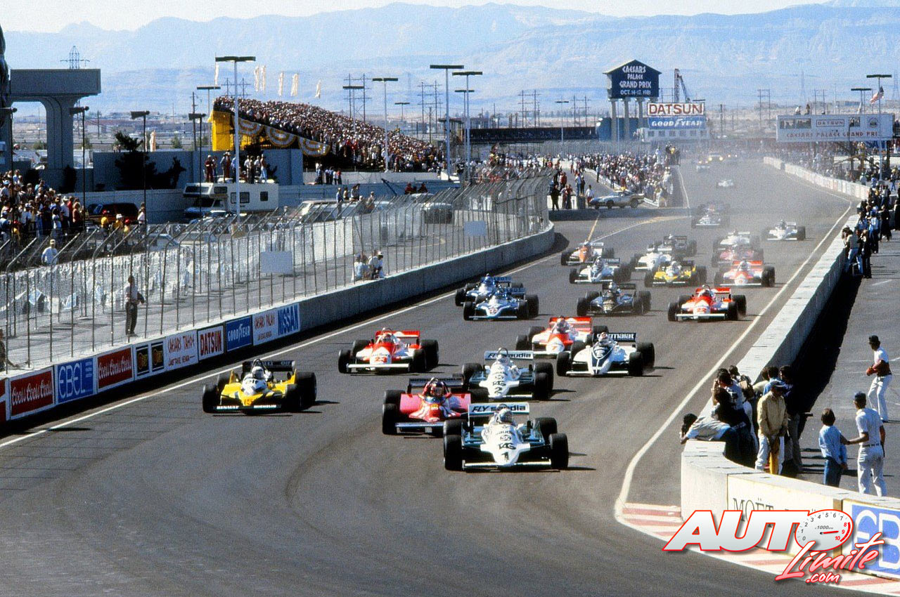 Salida del GP de Las Vegas de 1981, disputado en el circuito Caesar Palace, construido para la ocasión en la ciudad de Las Vegas (EEUU).