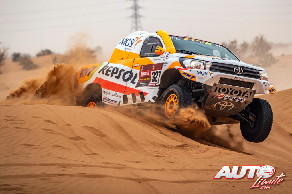 Isidre Esteve, al volante del Toyota Hilux V8 4x4, durante una etapa del Rally Dakar 2021.