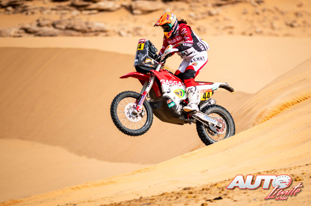 Laia Sanz, a los mandos de su Gas Gas 450 Rally, durante una etapa del Rally Dakar 2021.