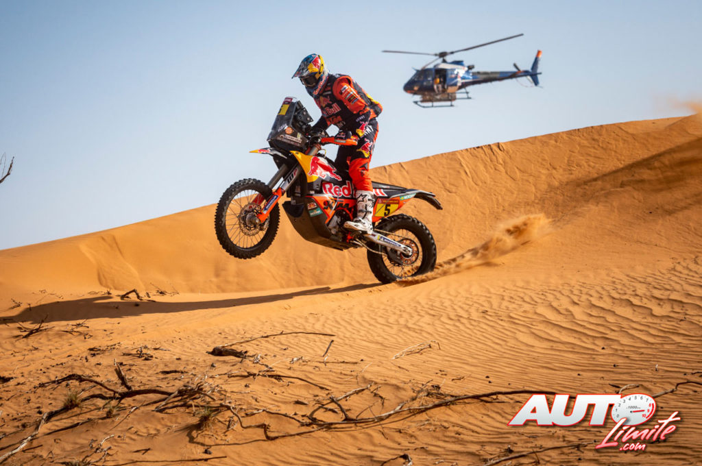 Sam Sunderland, a los mandos de su KTM 450 Factory, durante una etapa del Rally Dakar 2021.