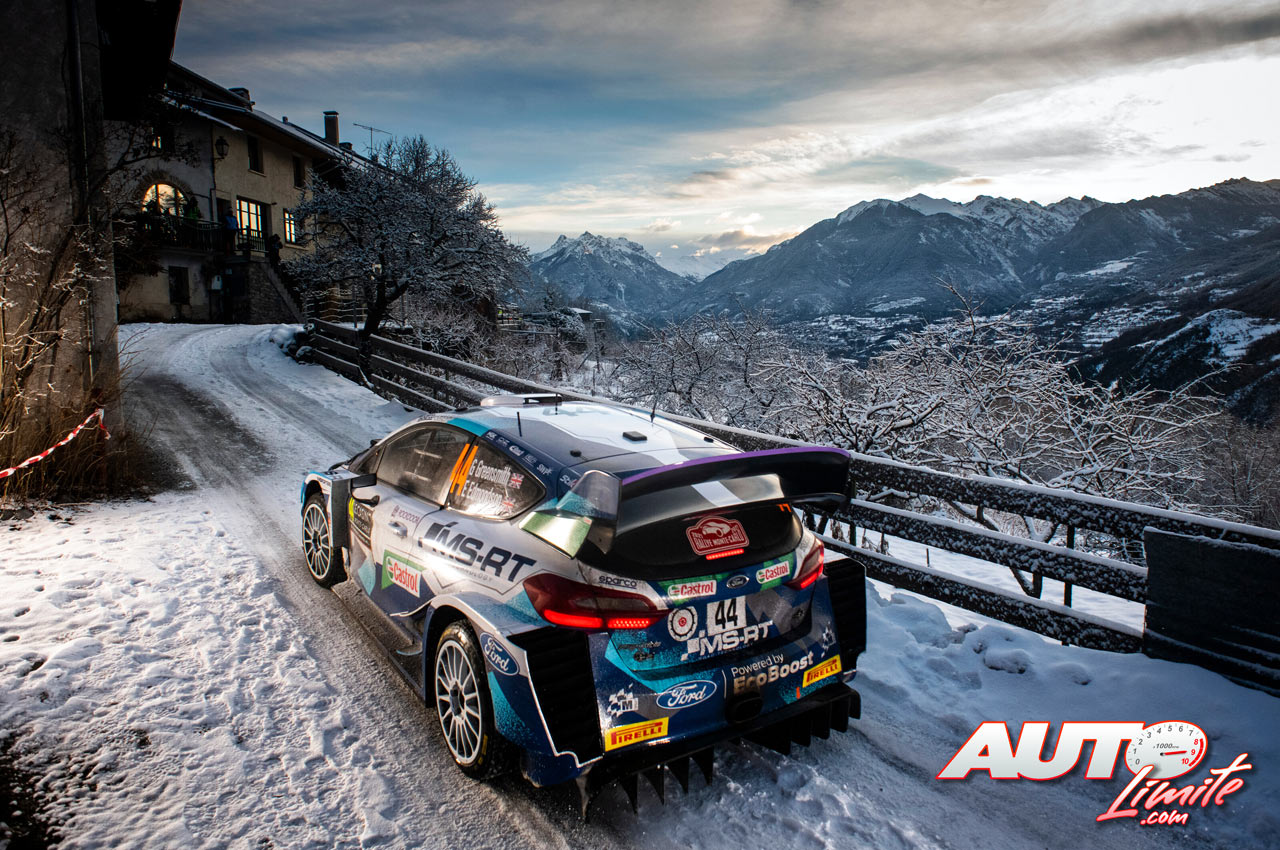 Gus Greensmith, al volante del Ford Fiesta WRC, durante el Rally de Montecarlo 2021, puntuable para el Campeonato del Mundo de Rallies WRC.