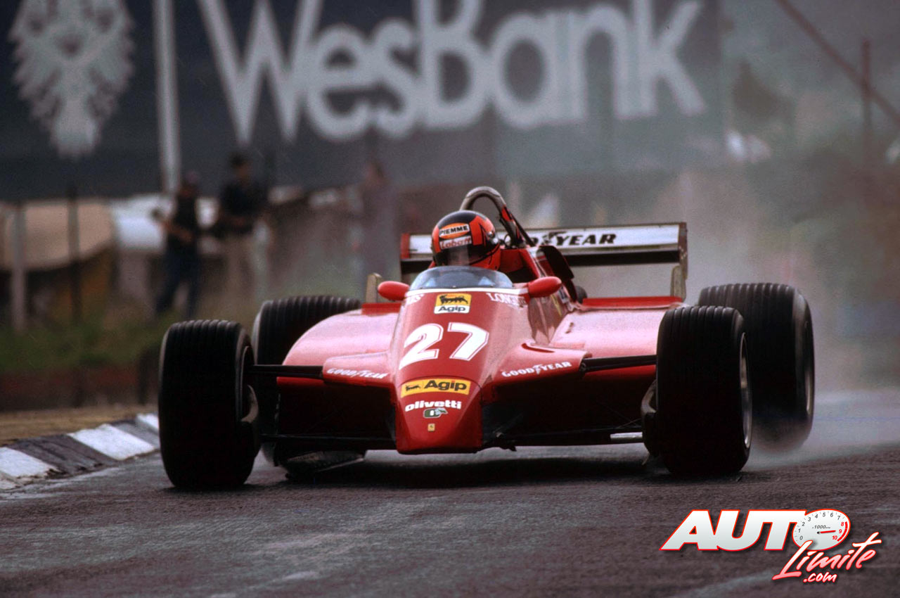 Gilles Villeneuve, al volante del Ferrari 126 C2, durante los entrenamientos del GP de Sudáfrica 1982, disputado en el circuito de Kyalami.