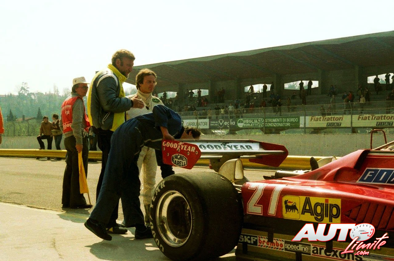Gilles Villeneuve, junto a su Ferrari 126 C2, durante el GP de San Marino 1982, disputado en el Autódromo Dino Ferrari de Imola.