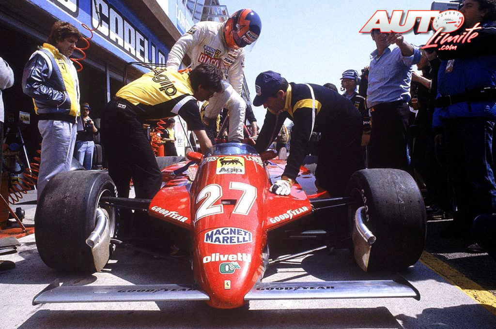 Gilles Villeneuve introduciéndose en el cockpit de su Ferrari 126 C2, durante el GP de San Marino 1982, disputado en el Autódromo Dino Ferrari de Imola.