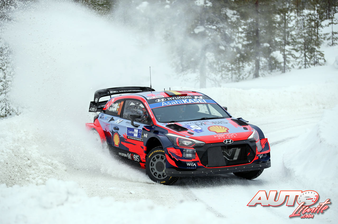 Thierry Neuville, al volante del Hyundai i20 Coupé WRC, durante el Rally Ártico de Finlandia 2021, puntuable para el Campeonato del Mundo de Rallies WRC.