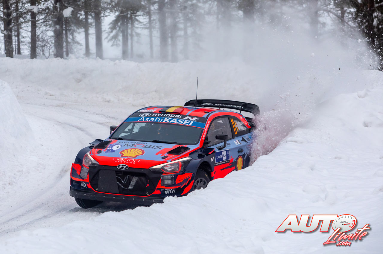 Thierry Neuville, al volante del Hyundai i20 Coupé WRC, durante el Rally Ártico de Finlandia 2021, puntuable para el Campeonato del Mundo de Rallies WRC.