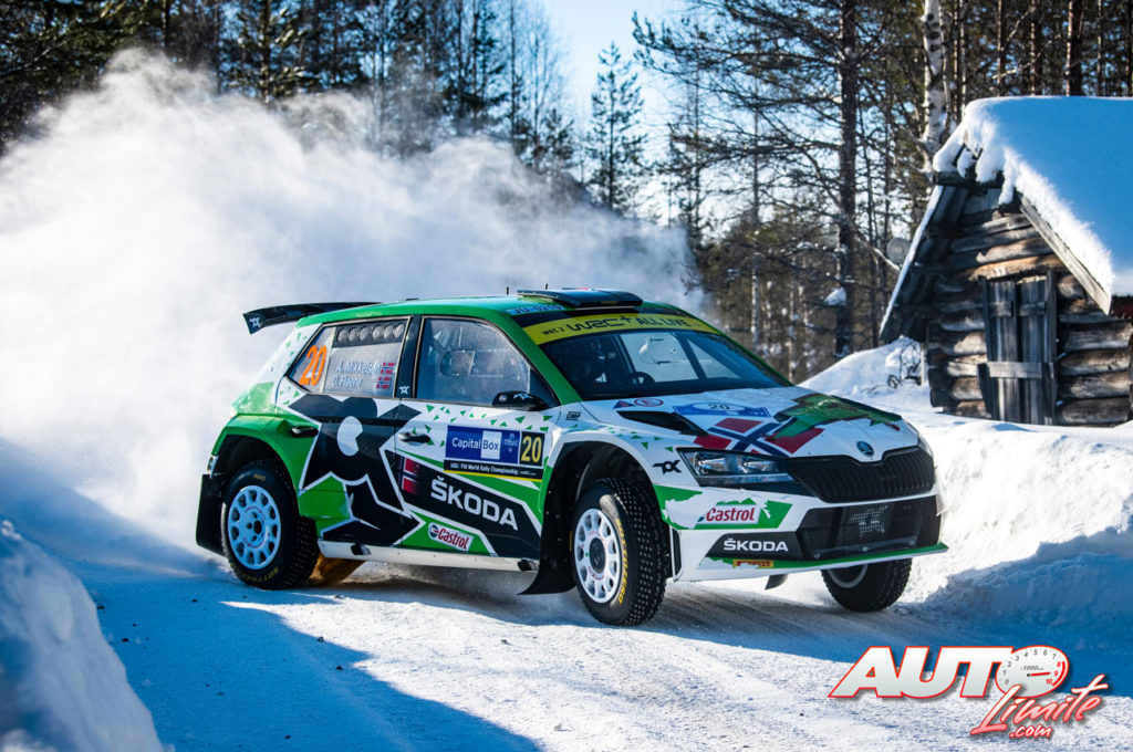 Andreas Mikkelsen, al volante del Skoda Fabia Evo Rally 2, durante el Rally Ártico de Finlandia 2021, puntuable para el Campeonato del Mundo de Rallies WRC 2.
